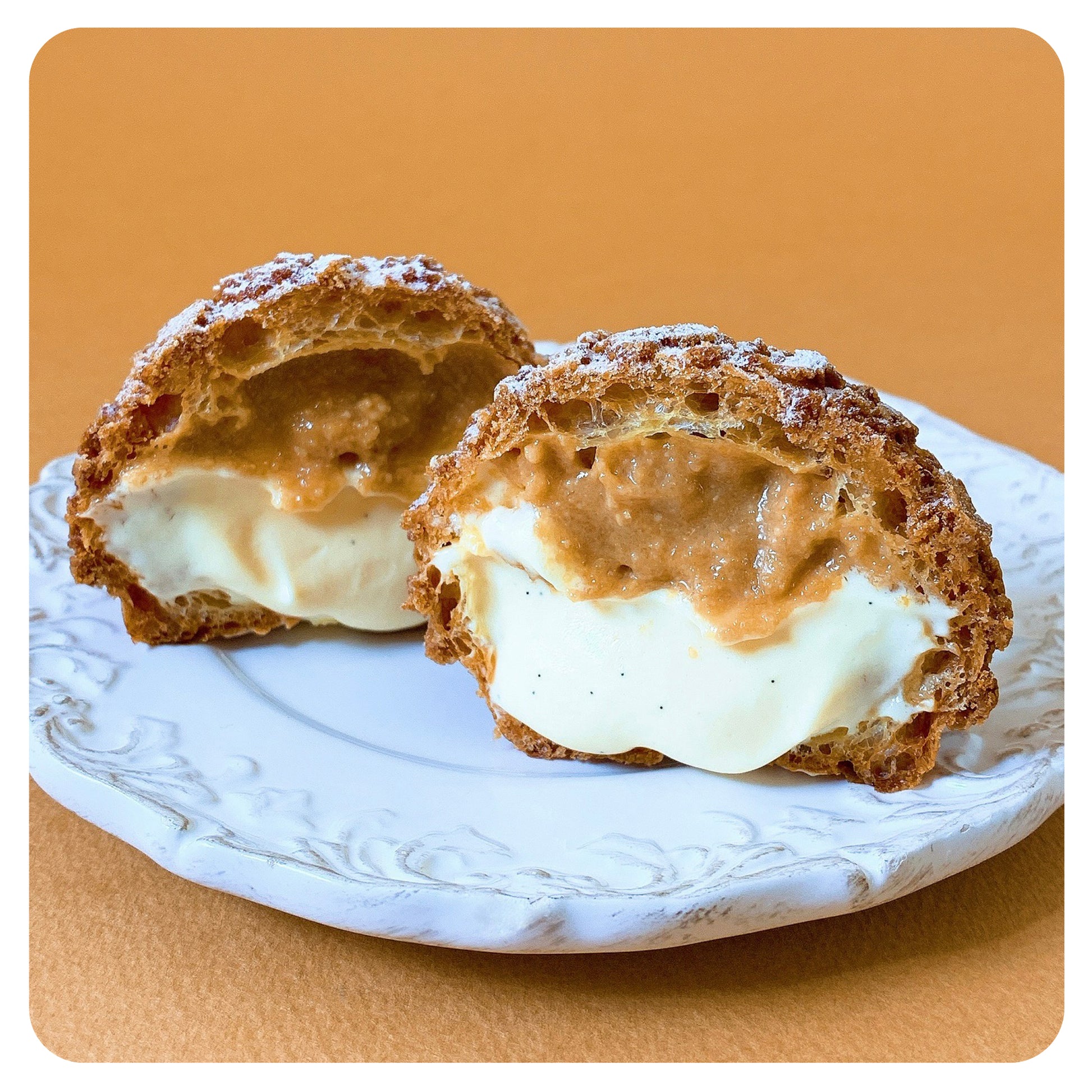 自家製の香り高いピーナッツバターとミルクカスタードのシュークリームです。